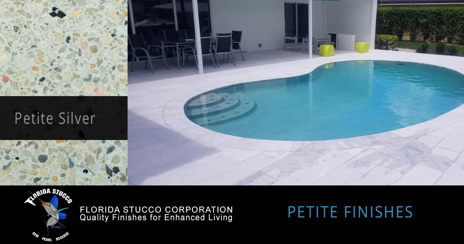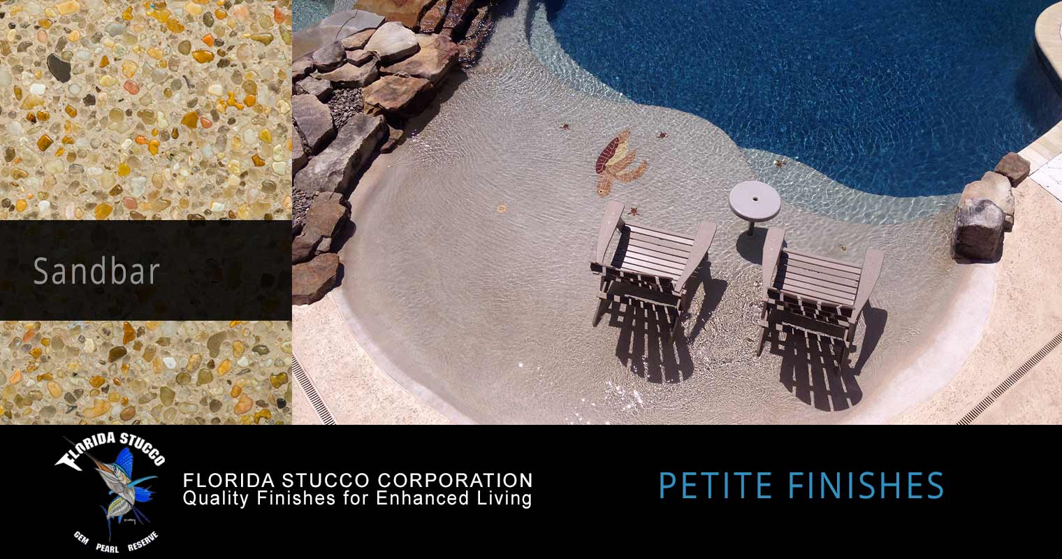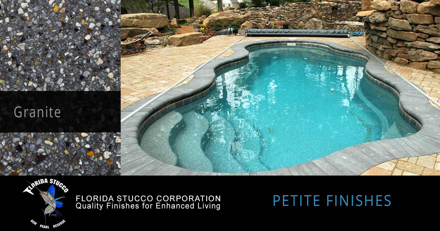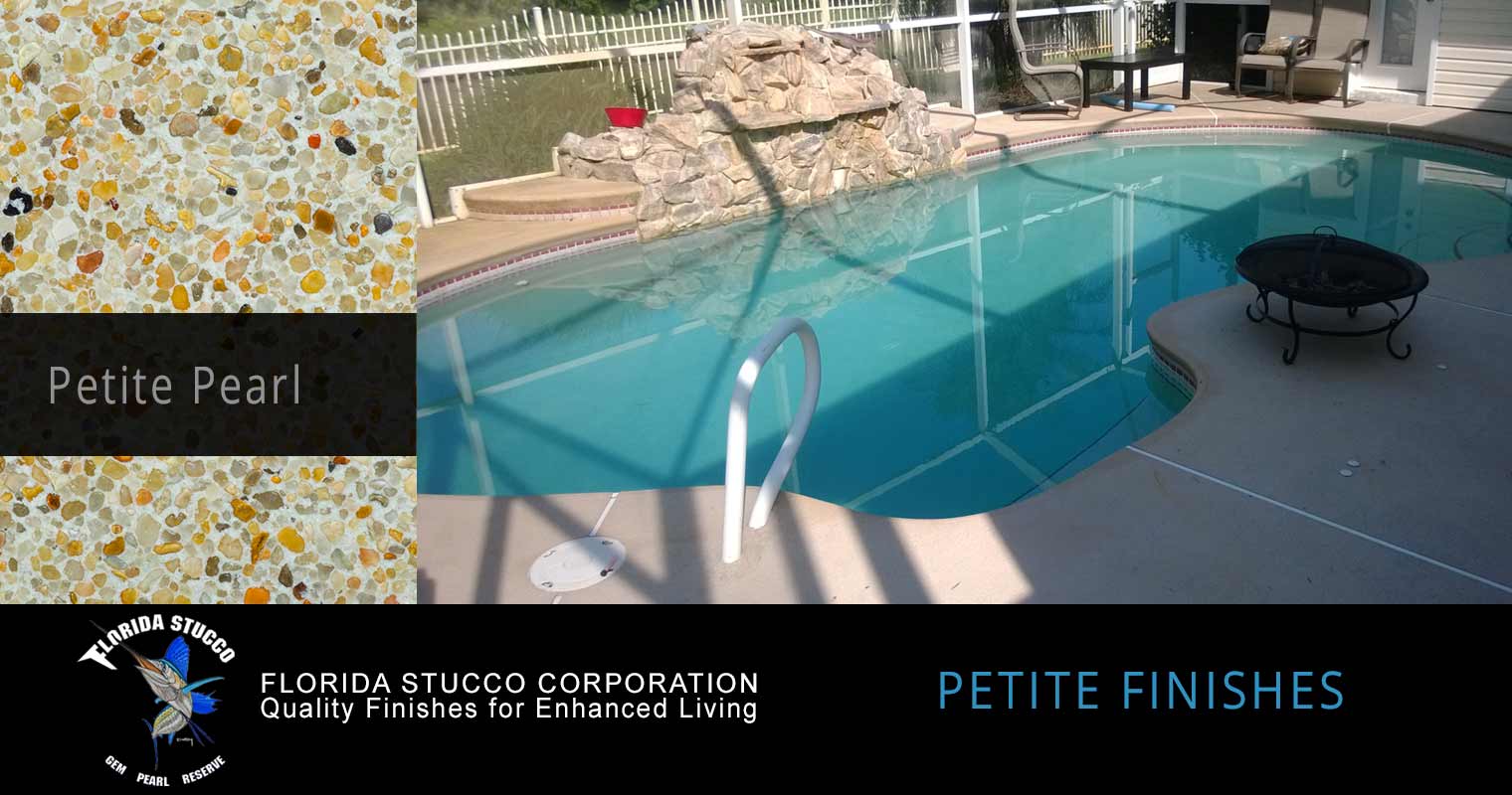 Please scroll over the finish sample to see actual pool images and how your pool could look with one of Florida Stucco's Petite Finishes.